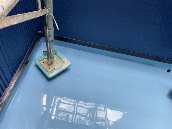 面積の狭い部分は防水シートを敷いてその上から防水塗料を塗る。