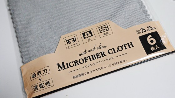 100均で6枚入りのマイクロファイバー・クロスが100円で出ているので、これを使って簡易夏用マスクを作ってみた。