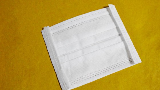 3分でできるマスク。真ん中の部分にティッシュを挟んで時々取り替えるのもいいかもしれない。