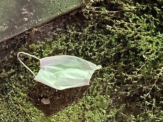 よく見るともう少し離れた街路樹の根元にももう一つ白いマスクが捨てられていた。