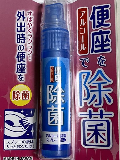 色んな消毒剤が売られているが、初めて便座専用の消毒剤を見つけた。それも100均ショップで売られていたのである。