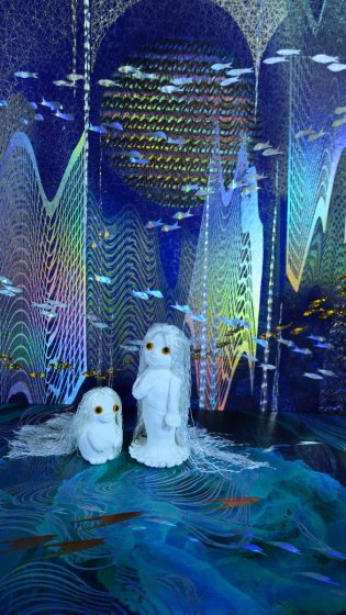目が同じだと並んで写真に撮っても違和感がない。2体のアマビエが並んで立っていると会話が出てきて物語が流れていくような気がして楽しい。