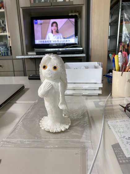 もう少し人魚っぽいアマビエがいい。口の先がイルカのようなのは、大口開けてパクっと噛みつかれそう。