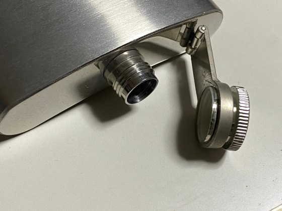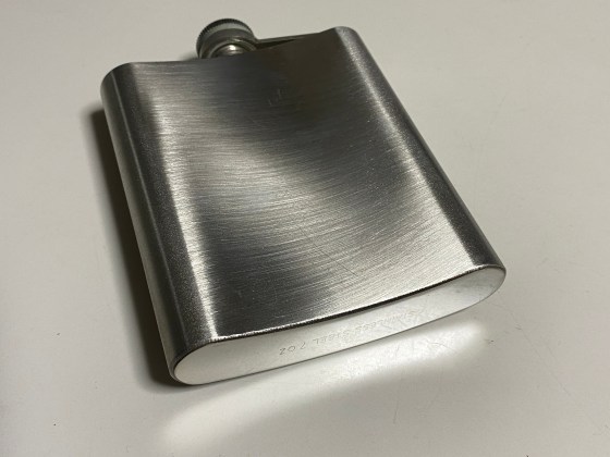 これはスレンレス製なのであまり酸化しないので取り扱いは簡単である。スキットルの内部を洗いたいときは、アルコールを入れて細いブラシで洗ってからよく水で濯ぐのが一番いい。兎に角お酒お入れっぱなしにしないことである。