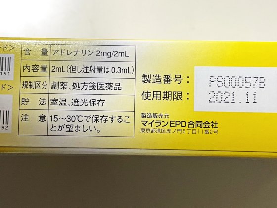 エピペンには有効使用期限があり、約1年である。保険が適用されるとはいえ安い薬ではない。