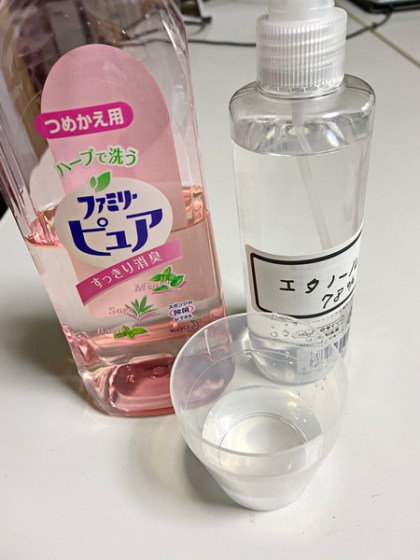 ここで問題になるのが、水とアルコールと洗剤の比率である。アメリカなどの国ではこの比率が表示してあるが、日本ではないので厄介である。