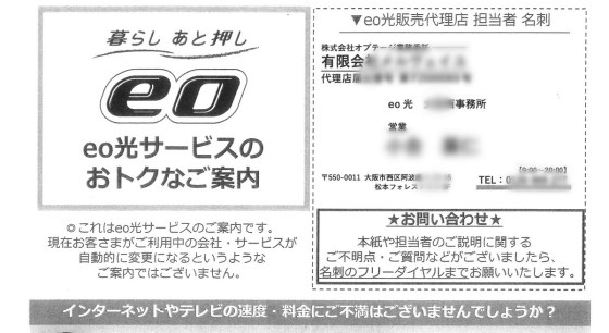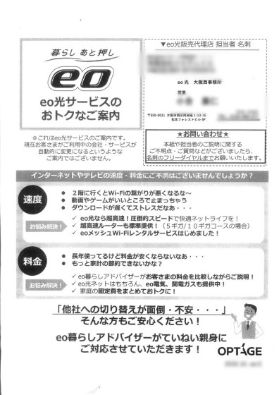 この時点でドアを閉めるべきかどうか迷ったが、一体こやつは何者と思って「こんなものだけで承諾できない。印刷なんてパソコンが有れば誰でもできる。」と言うと、今度は名刺を出してきた。