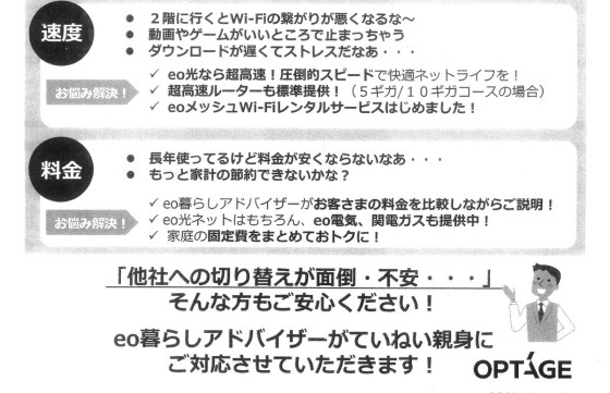 何の工事かと聴いたら、回。線の速度を上げる工事だという。念の為、身分証を見せてほしいというと、首からぶら下げたカードを見せたので、よく見ると代理店と書かれているので、怪しいと思い、その工事は無料なのかと尋ねると、それには答えず、説明書を出してくどくど説明を始めた。