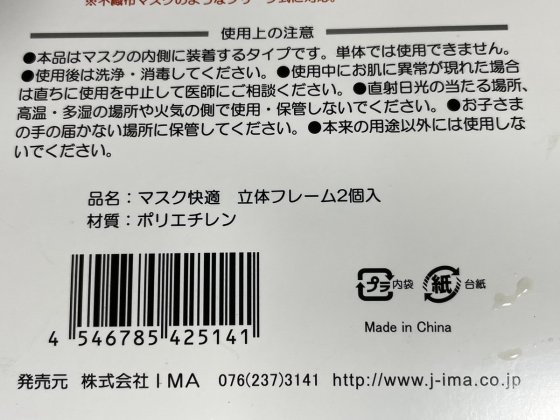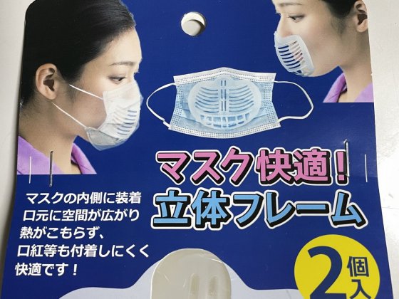 マスクをすると密着して息苦しくて仕方ない。ところが100均で見つけたマスク用の立体フレームを装着するとその問題が解決する。