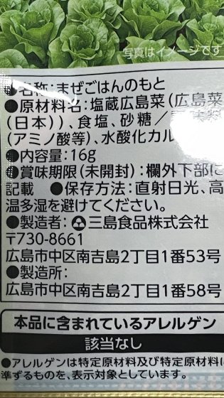 原材料名を見ていると「塩蔵(えんぞう)広島菜と書かれてあるが、塩蔵とは塩漬けのこと。