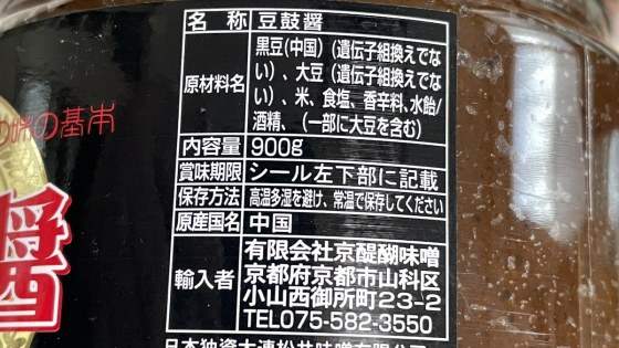ユウキの豆鼓醤は出来上がった豆鼓を使って作っているが、こちらは黒豆から作っているようである。メーカーの京醍醐味噌は、いろんなものを作って業務スーパーに卸しているようである。