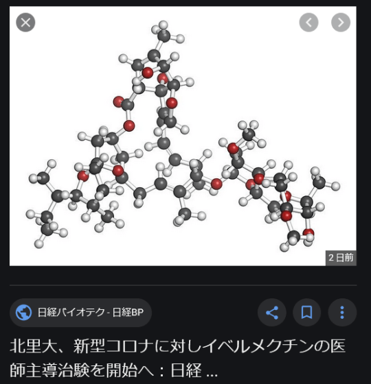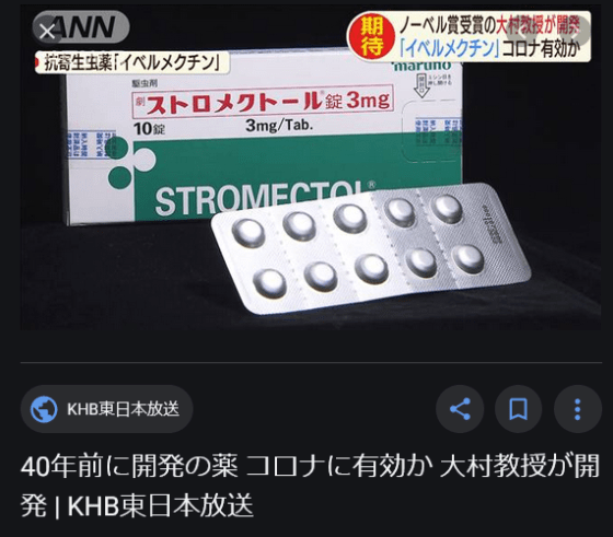 2015年のノーベル賞受賞者の北里大学・大村智特別栄誉教授が約40年前に開発した薬イベルメクチンが新型コロナウイルスの治療薬の一つとして期待されていた。詳しいことは、次の資料を参照のこと。