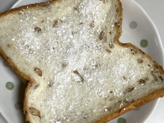 トースターで焼いて食べてみる。・・・???ほとんど味らしきものがない。じっと考えてみると、薄うす甘いココナッツのような感じ。