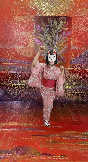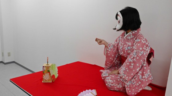 左側のお面の方が白くてはっきりとしているので写真写りがいい。