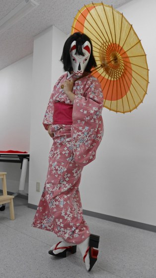 このポーズはいかにも決まっていてお気に入り。着物から下駄まで私のもの。後始末が大変だった。