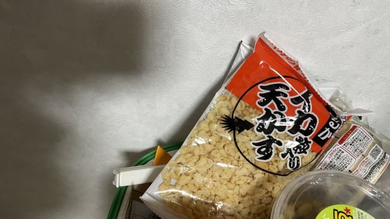 この天かすはイカ粒入りなので、袋にイカのイラストが刷ってあったのだ。遠目には、ゴキブリだと思い込むとゴキブリに見えたのだ。