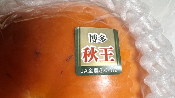 柿が欲しいというというと息子がこれしかなかったと言って買ってきた800円もする柿。博多産の「秋王」。確かに値段は王である。