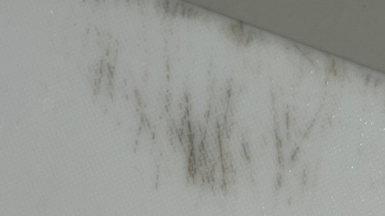 しかし、どうしても漂白剤だけでは落ちない汚れもある。包丁の切り傷に黒カビが湧いてできた汚れである。これは物理的に包丁でこそげ落とすしか方法はない。ぶつぶつ言いながら汚れを落としている私を見るに見かねた息子が、抗菌まな板を買ってくれたのである
