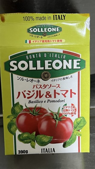 味付けのパスタソースは、同じくイタリア産の「バジル&トマト」を使うことにする。