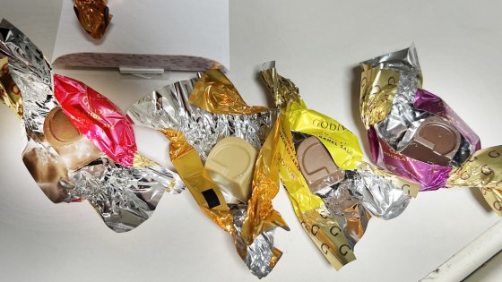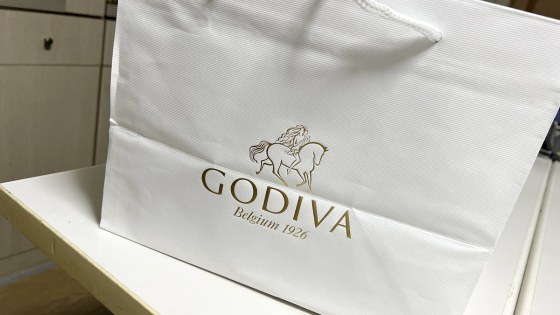 大きな段ボール箱を開けたら、ゴディバの白い袋が出てきたが持ってみるとやたらと軽い。
