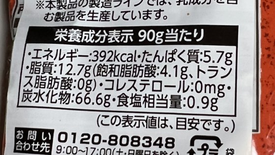 90グラム入りで88円、カロリーは395キロカロリー。100グラムに直すと436キロカロリーだからやはり揚げ物はカロリーが高い。