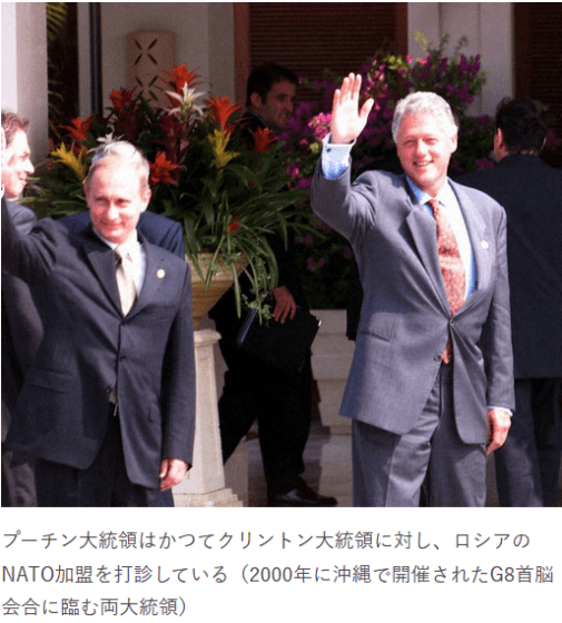 もう一つは、2000年に、クリントン大統領に対しも、ロシアのNATO加盟を打診している。しかし当時、ロシア経済は破綻しており、軍事力も衰退していた。西側の支援を得ることで危機打開を図ろうとしたが、クリントン大統領はプーチン大統領の提案を拒否した。