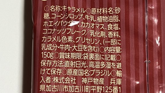 ブラジル産だけあって、原材料名に「牛乳」と書かれているのはさすがだと思った。森永キャラメルでさえ、「粉乳」とか、「練乳」とかかれている。明治ミルクキャラメルも牛乳とは書かれていない。