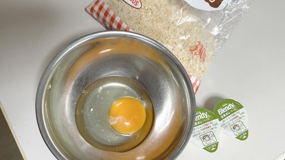 材料は、卵大1個、ブレンディ抹茶オーレ2個、パン粉適量、合成甘味料2袋。
