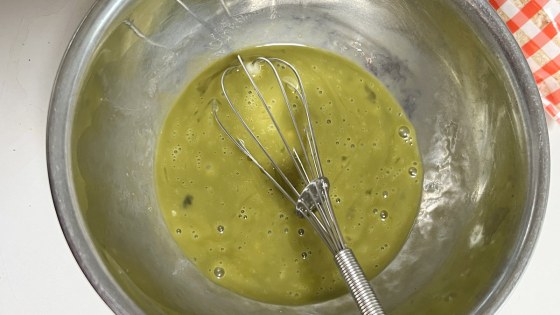抹茶オーレと卵を混ぜて均一にする。この時バニラなどを加えてもよい。
