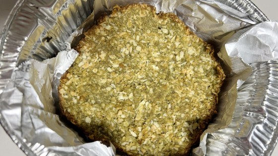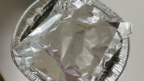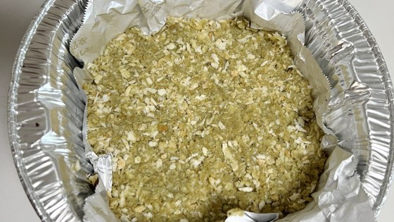 くっつかないアルミホイルをしいて、その中にパン粉を軽く押さえながら敷き詰める。