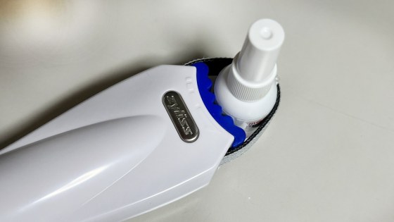取っ手の部分を回すとわっかのベルトの長さを調節できる。