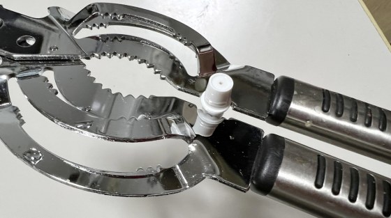 しかし、この蓋開け器の場合蓋の直径が大きいととっての開きが大きくなって力が入らない。
