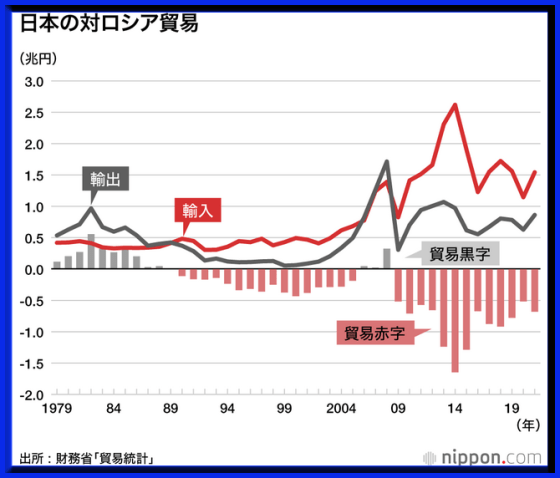 ここ最近は、ロシアからの輸入赤字が増えている。ということは、日本はロシアからの輸入に頼っているものがあるということなのだ。