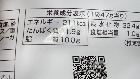 油で揚げているせいかカロリーは高い。この少しの量(47g)で211㎉である。