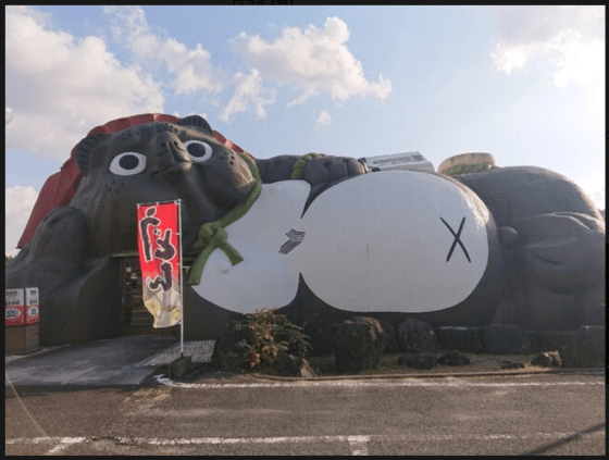 ここが入り口。中にはタヌキの置物が飾ってあったり、温泉の足湯なんかもあるらしい。