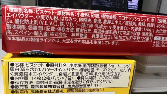 一方、森永の方は、バターやチーズパウダーが入っている。