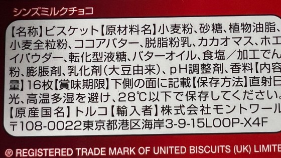 このトルコ産シンビスケットは、兎に角薄いビスケットなので歯触りの食感がいい。薄いおせんべい的な感じでありながらチョコレートが1面にだけ塗布されている。シンズとは薄いという意味で、シンズビスケットとは薄焼きビスケットの意味である。