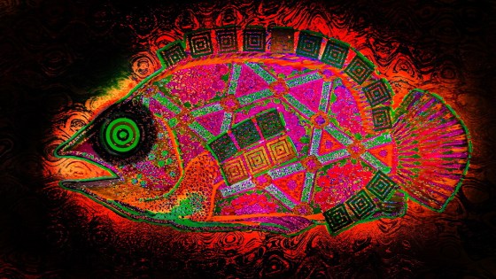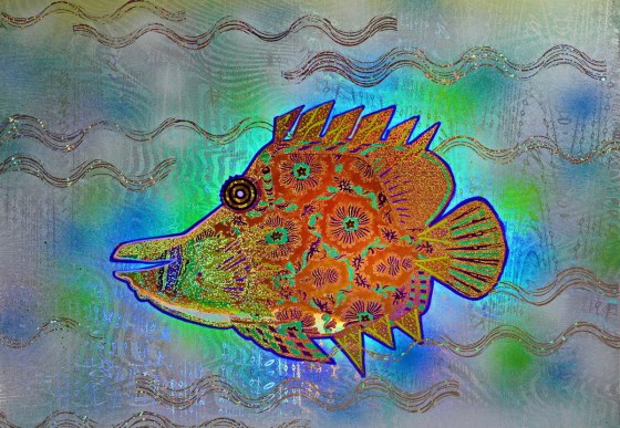 スマホで記念写真を撮ってほしいと言われて、その時、魚には人間のような手がないし、それ以前にスマホもないのに気が付いた。写真を撮ってやって見せてあげると「私ってきれい?」と聞いてくる。「こんなにきれいな魚は見たことがない。」というと満足そうにゆらゆらと泳ぎ去って行った。きっとハロウィン当日の海の中はきらきらと美しい魚達で一杯になる事だろう。