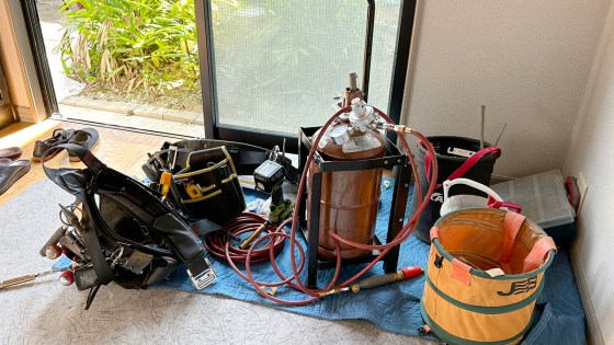 エアコンの工事屋さんが持ってきた道具。