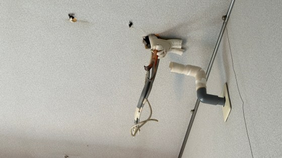 応接間の業務用エアコンを取り外して家庭用エアコンを取り付ける。