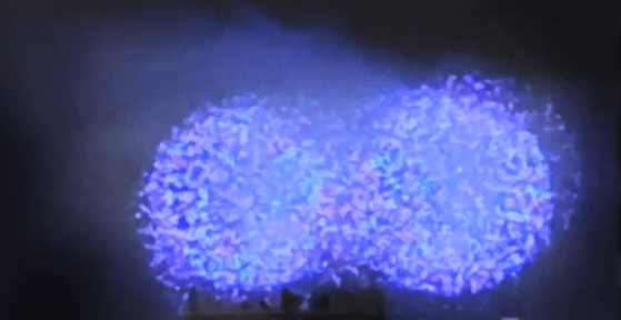 音楽に合わせて花火が打ちあがっているようで、4~5分で休憩が入って次の曲とともに違った趣の花火が上がる。このブルーの花火が一番良かった。