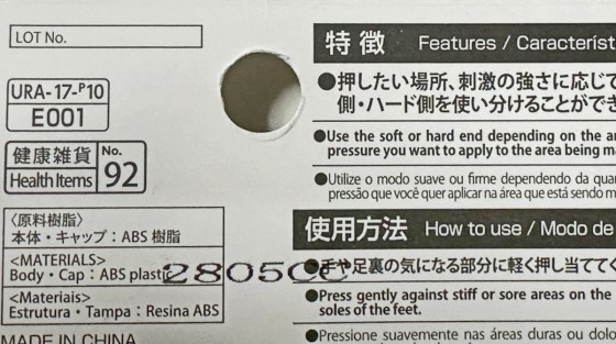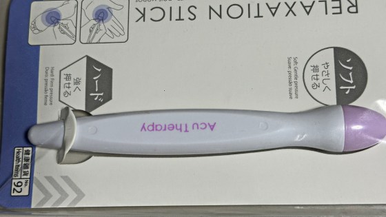 今までの勘で、ダイソーで見つけたこのツボ押しはかなり効果的な気がする。ツボ押しを英語風に直すと「リフレッシュスティック」というらしい。