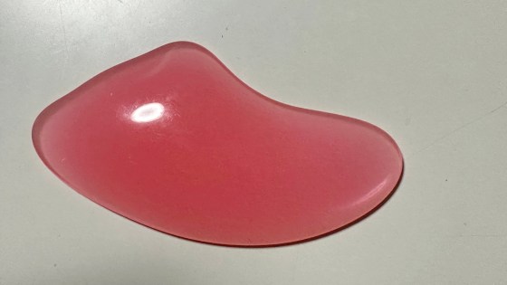 カッサとは天然石や牛の角からできたプレートで肌を擦り、圧をかけて血液やリンパの流れを良くする中国の伝統的美容法である。血行を良くし老廃物の排出を促進することで、むくみを解消したり代謝を促進したりすることができる。そのための道具が上のカッサプレートである。このプレートも本来の使い方以外にツボ押しにも使える。ツボというのは骨に沿って点在していることが多いので、このカッサプレートを使うと少しぐらいツボの位置がずれていてもいいからである。その他にはツボからツボへと移動するときにも便利である。
