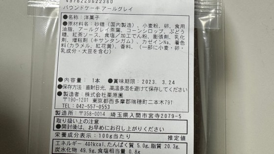 アールグレイのパウンドケーキを買ってきた。