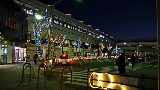 この駅前のイルミネーションの費用は、駅前の商店街のみで賄っているようには思えない。