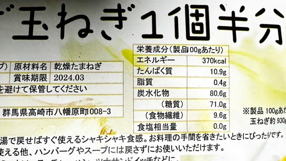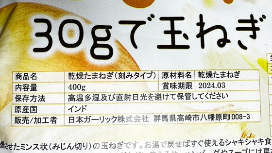 30gで玉ねぎ1個半分に相当する。賞味期限が長いのもいい。