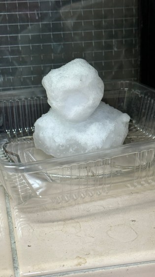 ふっと台所に置いた雪だるまを見ると無残にも溶けてちぢこまっていた。