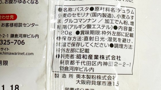 100g当たり311㎉であるからカロリー的には少ない方である。(普通のマカロニは100g当たり379㎉)