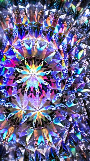 例えば、このカラフルな絵を頂角30度のテレイドスコープを見ると次のような画像が見える。この画像を撮るというのが大変なのである。