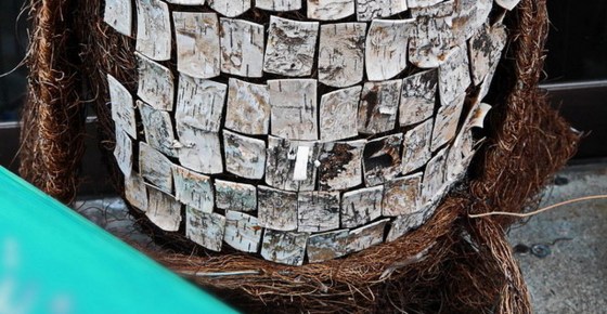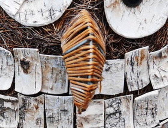 くちばしの形は針金で作って、その周りを植物の茎らしきものでぐるぐる巻きにして作ってある。